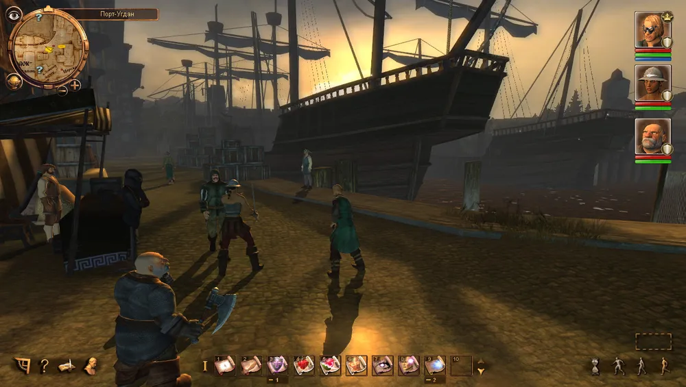 Спрашиваем у трактирщика, как бы привести Форгримма в чувства и получаем в подарок «Тёмное специальное» пиво. Даём выпить его гному и вуаля, он трезв. Спрашиваем, что он знает об убийстве Ардо и узнаём, что в день своей смерти, Ардо (простите за тавтологию:) должен был встретиться с начальником таможни Ташмманом в портовом районе. Ну хоть какая-то зацепка! Предлагаем гному вступить в нашу партию, и уже втроём идём в портовый район.