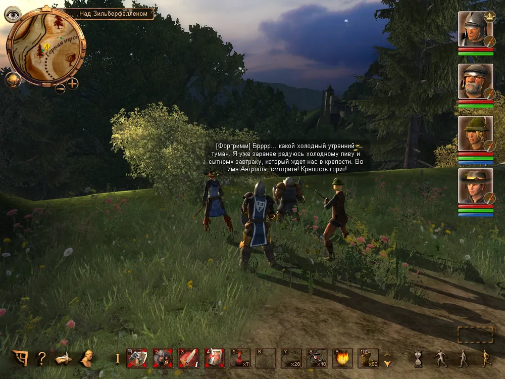 Естественно, просто так попасть в замок нам мешают обстоятельства - замок осаждён орками и какой-то злой колдуньей - об этом мы узнаём сразу же, встретив, знакомого ещё по Авестрою (первой локации), солдата.