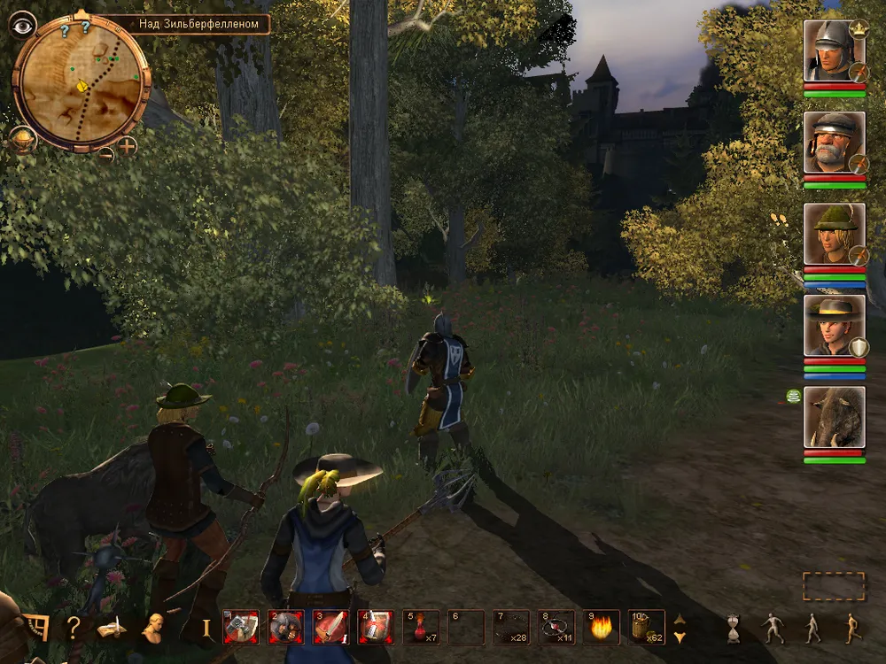 Вся зона это один могучий лес с крепостью на горе и с небольшим поселением в глубине (этого самого леса). Мне лично напомнило Вековечный лес из Властелина Колец, так как лес живёт своей жизнью, перед входом внего (на поляне) светит яркое солнце, летают бабочки, даже свиньи пасутся, а внутри освещение меняется (становясь тёмно зелёным), что создаёт интересную атмосферу, которую, уверен, каждый из вас ощутил или ощутит скоро.