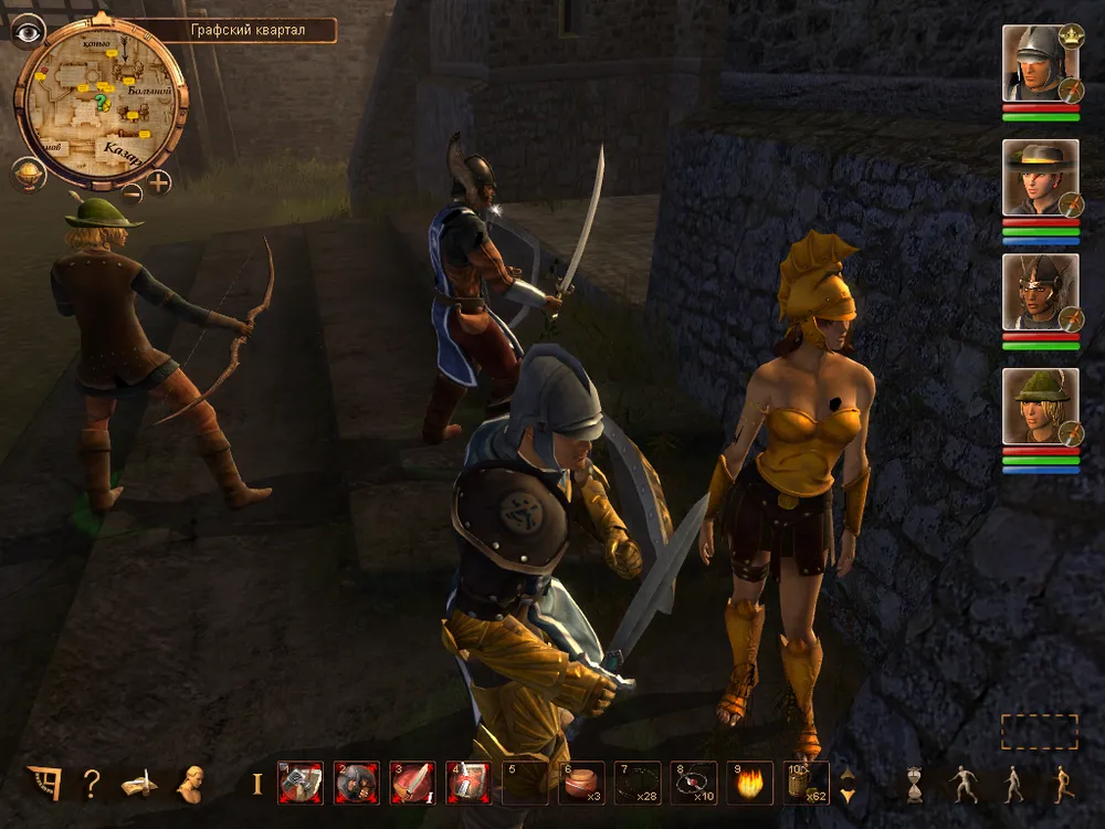 Мы попадаем в первую локацию и начинаем постепенно собирать команду; до четырёх, число сопартийцев дойдёт уже во второй локации, так что тактики боя следует планировать уже на ранних стадиях игры. Классическое разделение ролей на воинов ближнего боя, стрелков и магов в игре присутствует; также необходимо прокачивать социальные и дополнительные параметры для того, чтобы насладиться игрой полностью и иметь различные варианты при прохождении квестов (тут и взлом замков, и убеждение/обольщение, и угроза скорой расправы).